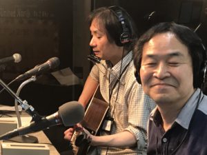 第17回 ゲストは『品川敏樹』さんです。品川さんとは、桑野隊長が藤が丘でライブをやり始めた頃からのお付き合い。今回はその頃の話で盛り上がりました。知る人ぞ知る品川さんは、コンビニ経営の傍ら、あ、シンガーソングライターの傍ら、コンビニを経営していらっしゃいます。吉田拓郎さんのカバーでは右に出る者がいない!また、オリジナル曲もみんな知っている!というとてつもないシンガーソングライターです。今回は、そんな品川さんのおもしろいトーク満載!今回持参いただきましたギターは、マーチンでした。『旅の宿』で酔って、オリジナルの新曲『虹のかかるまち』を堪能いたしました♪